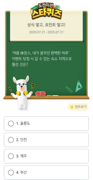 오늘도 퀴즈 풀고 포인트 챙기셨나요? 😊