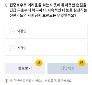 | 문제 | 신한카드의 사회공헌 브랜드명 |