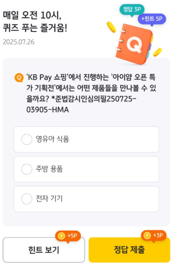📌 [7월 26일 KB Pay 리브메이트 오늘의 퀴즈]
