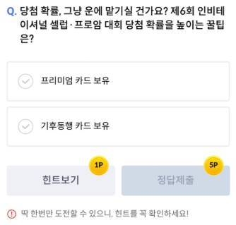 | 보상 | 힌트 1P + 정답 5P 지급 |