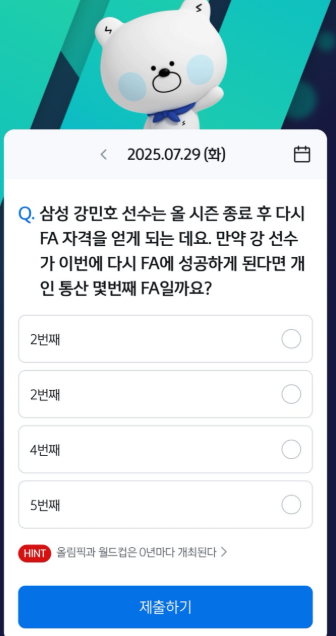 오늘의 문제는 삼성 강민호 선수의 FA 관련 내용이었습니다.
