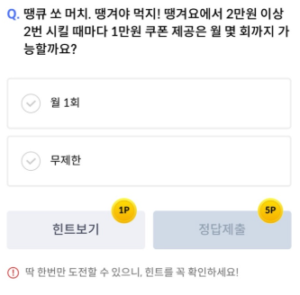 💬 오늘의 퀴즈는 땡겨요 주문 시 제공되는 쿠폰 혜택에 관한 내용이었습니다.
