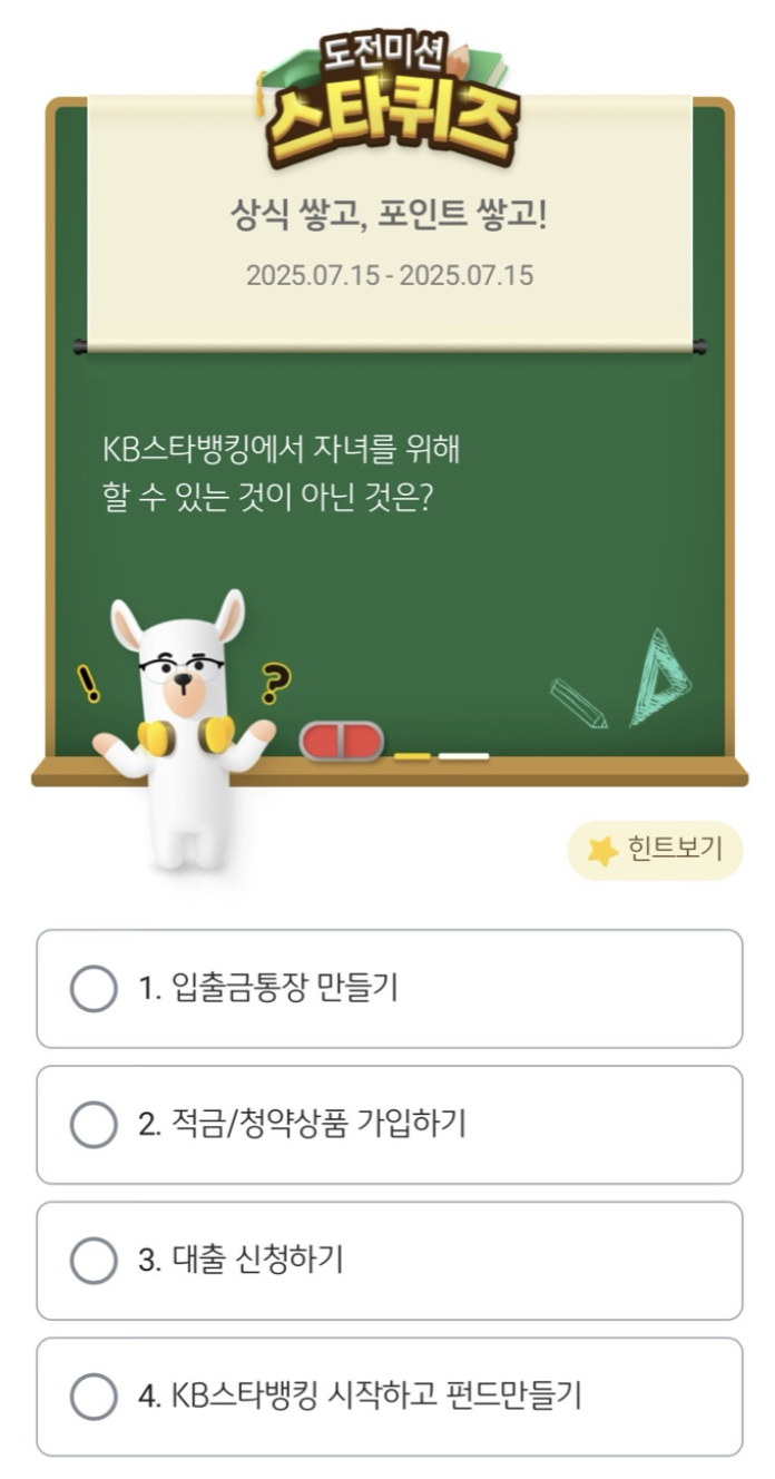 ✅ [7월 15일 KB스타뱅킹 오늘의 퀴즈]
