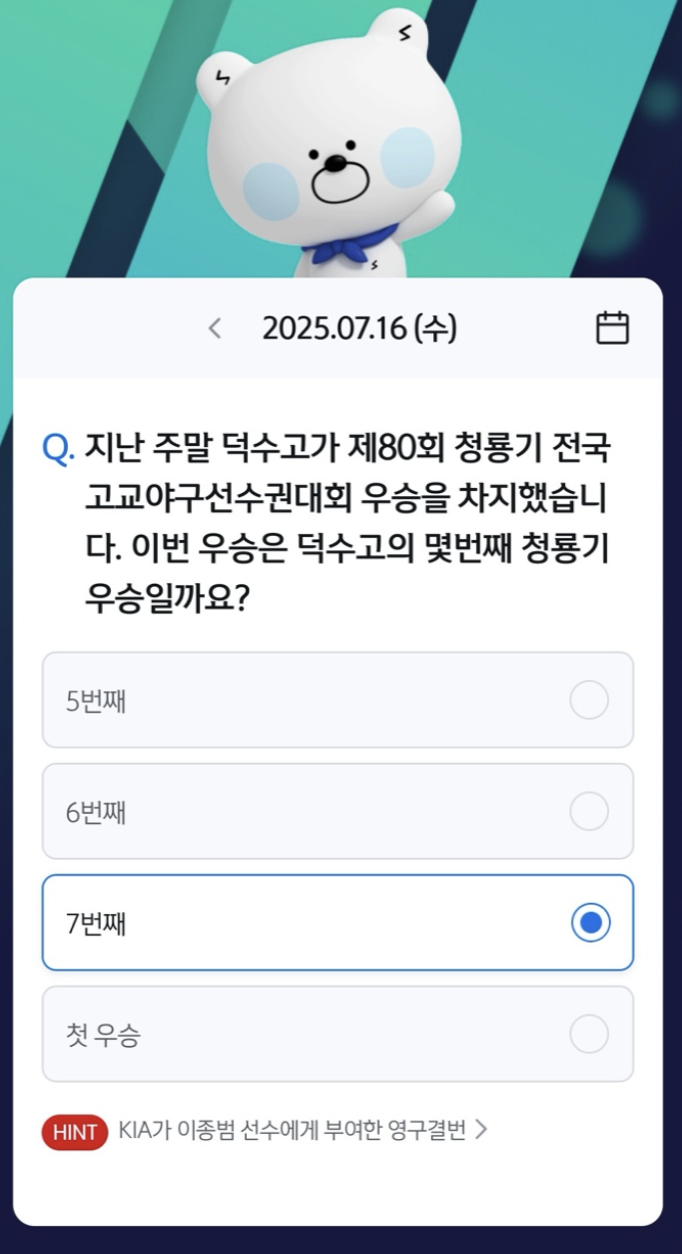 덕수고 팬이라면 바로 맞힐 수 있는 문제였죠!