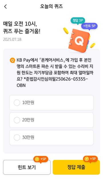 🎯 [7월 18일 KB Pay 오늘의 퀴즈 정답]